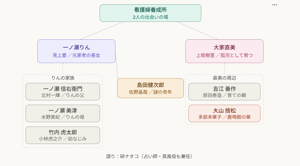 見上愛 / 一ノ瀬りん役 那須の元家老の家に生まれた長女。不運が重なり若くしてシングルマザーになりながらも、看護の道を志します。大河ドラマ「光る君へ」の藤原彰子役が記憶に新しい見上愛さんが、今度は明治の型破りな女性に挑みます。